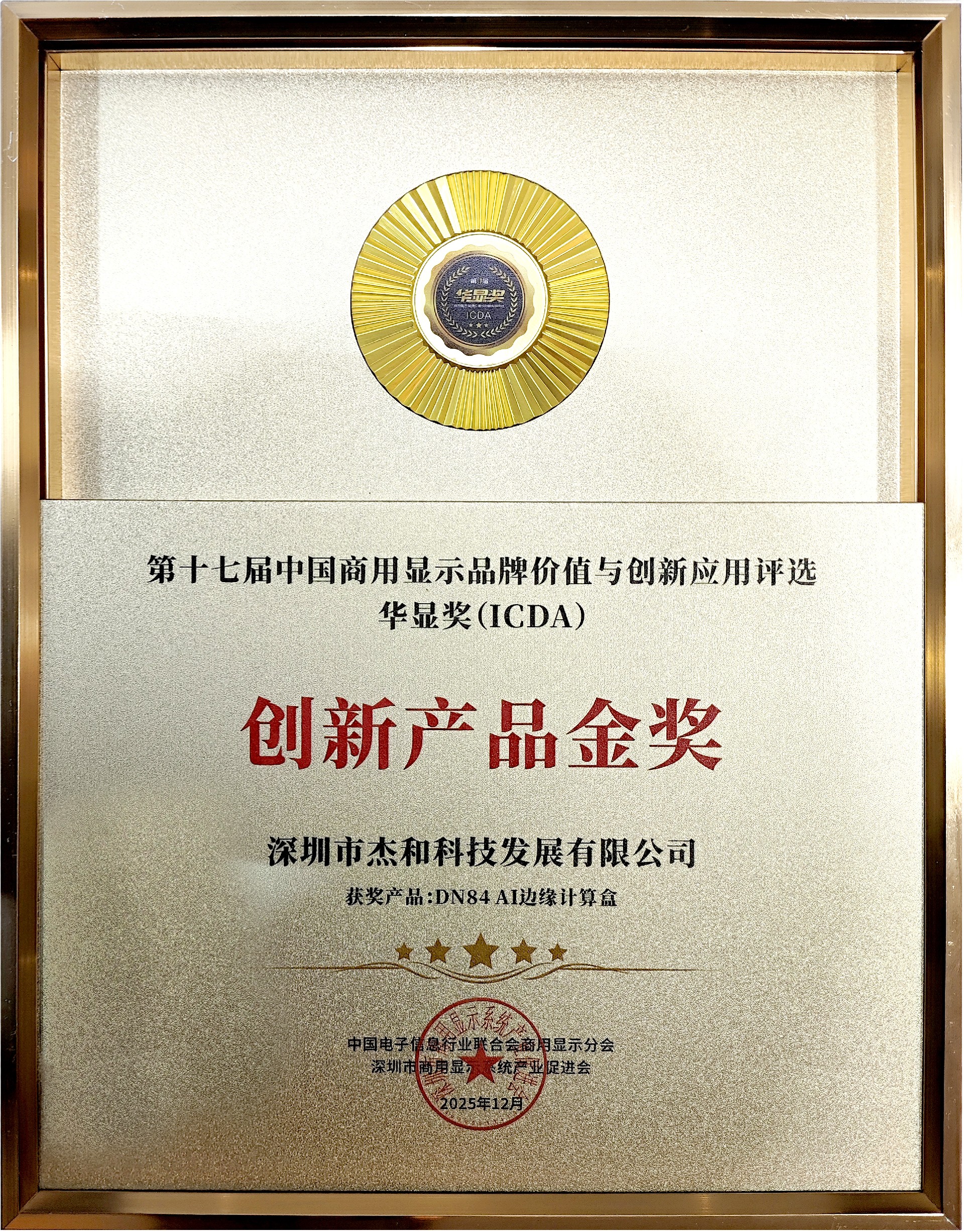 2025年12月18日,以“智显全球·数联未来”为主题的第十六届中国(国际)商用显示系统产业领袖峰会暨第十七届“ICDA华显奖”颁奖盛典,在深圳凯宾斯基酒店隆重举办。作为领先的AIoT数智化物联网技术方案服务商,杰和科技以重要赞助商身份深度参与本次大会,携旗下AI边缘计算、嵌入式计算、商用计算及信创计算等多条产品线的解决方案亮相,与全球产业伙伴共探智慧商显的未来发展。