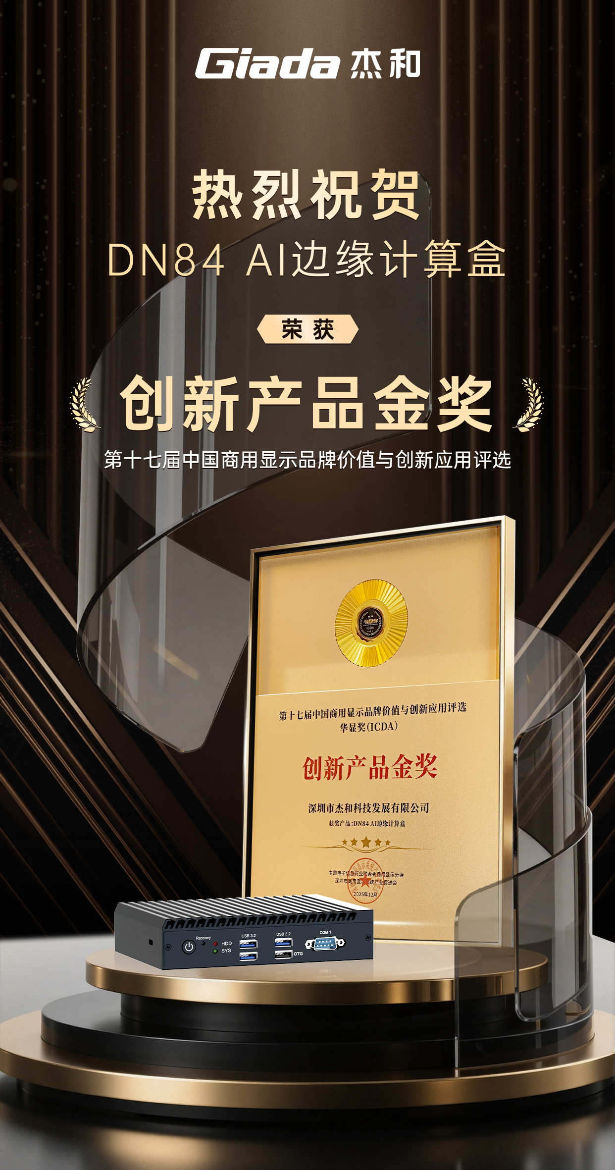 在备受瞩目的“ICDA华显奖”颁奖盛典上,杰和科技AI边缘计算盒DN84凭借其创新的边缘AI性能与设计,赢得了评委会的高度认可,成功斩获“创新产品奖”。