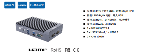杰和DN84边缘计算盒的突破,在于将工业机器人的“感知”与“执行”整合在单一硬件平台中。依托于搭载RK3576八核处理器(4×Cortex-A72 + 4×Cortex-A53)与6TOPS NPU的异构架构,DN84具备同步处理AI视觉识别与运动控制算法的能力。