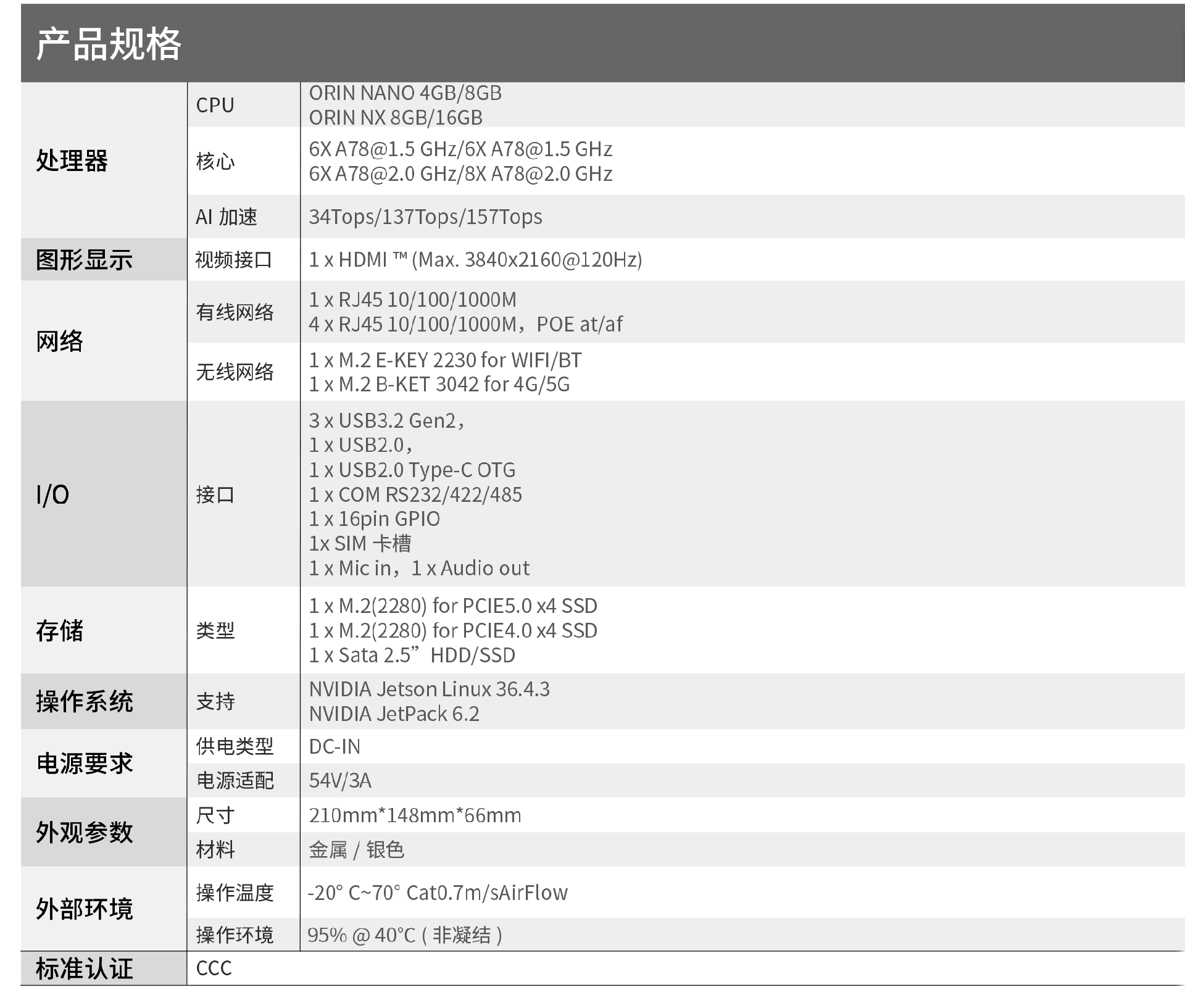 ·采用 NVIDIA® Jetson Orin NX/Nano 模组