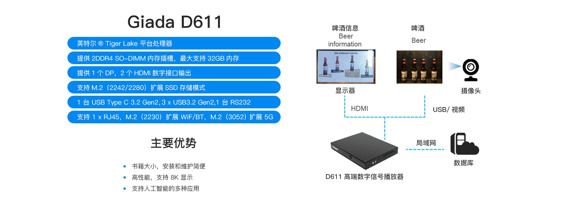 因此,对于嘉宾来说,呈现似乎被魔法控制。Giada 自豪地成为这一解决方案的一部分,为德国啤酒店带来智能的用餐体验。Giada D611,一款认证的英特尔视频AI机顶盒,部署于该解决方案中。