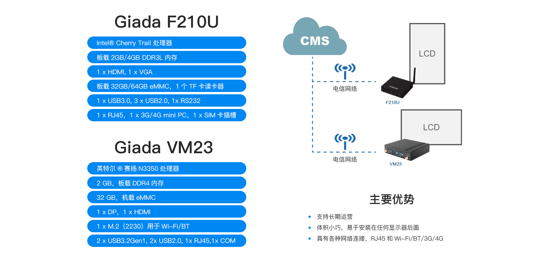 奥地利GSK-Gebro POS-药房项目已为200多家药房配备了数字标牌系统,正在推广。通过移动数字信息系统(置于收银台区及办公/商业场所),产品和促销活动信息会显示在POS屏幕上。它有助于促进自发购买,从而显著提高广告产品的销售率。该解决方案中部署了Giada F210U和VM23数字标牌播放器。这些播放器支持7×24的作,采用超紧凑且无风扇设计。它们是小型静态广告展示的理想选择。