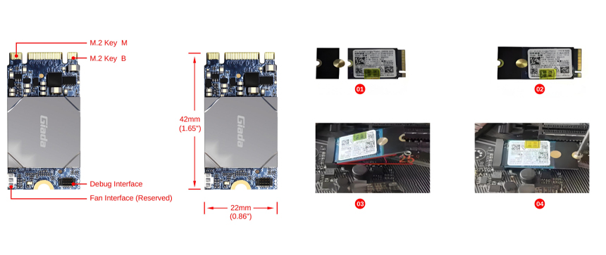 形态优势: 采用 M.2 KEY B+M 接口标准,尺寸仅为 22mm x 42mm。它可以直接插在主板上,无需额外的线缆连接,极大地节省了机器人胸腔内部的空间。